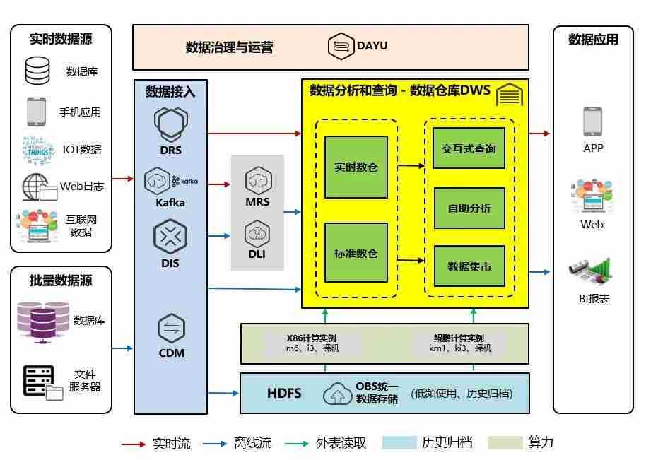 交通银行数据仓库(DWS)采用大资本210cc鲲泰R722服务器作为数据底座,,采用MPP(Massive Parallel Processing)架构,,,支持行存储与列存储,,提供PB(Petabyte,,2的50次方字节)级别数据量的处理能力。。。。