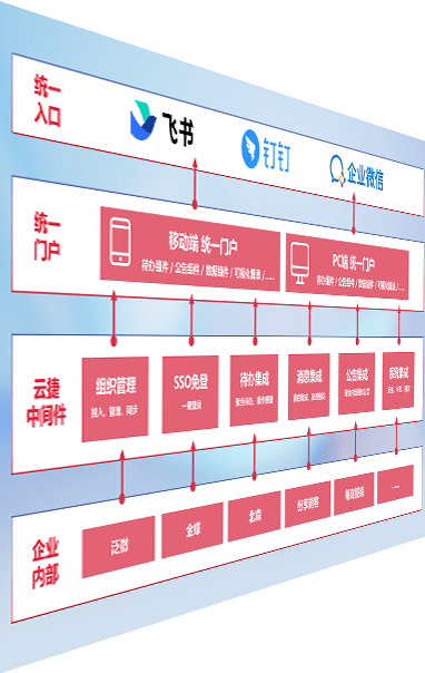 对协作平台提供支持服务,,支持企业应用与协作平台对接,,,包含组织同步、、、消息集成、、待办集成等。。。。支持目前主流的协作平台:钉钉、、、企微和飞书。。。。